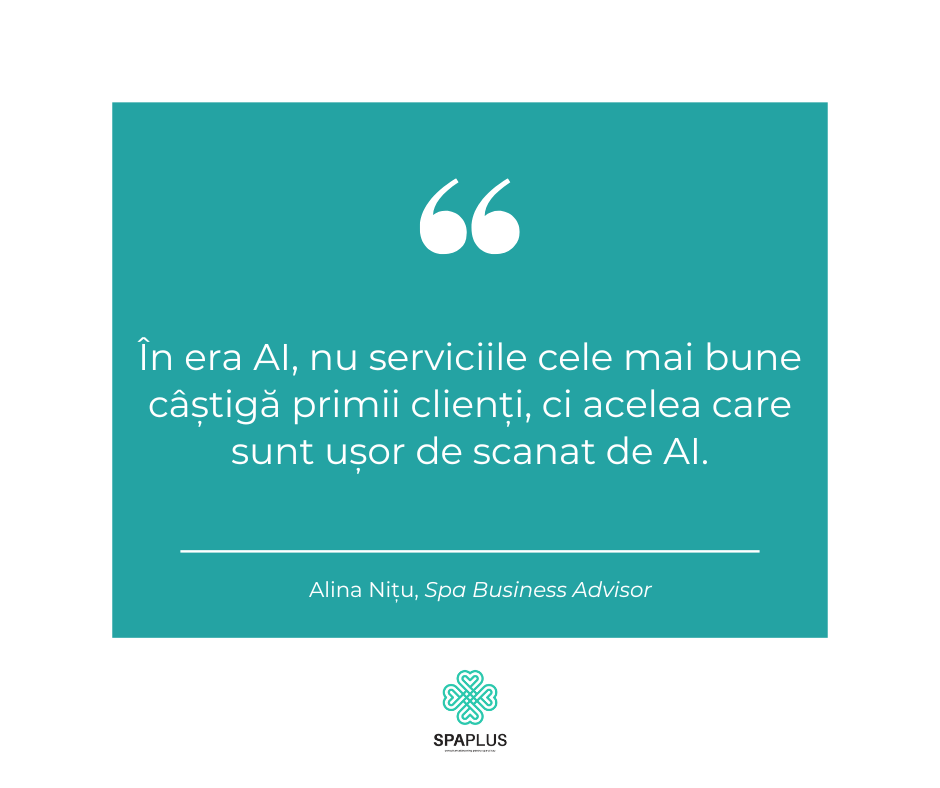 Așadar, AI schimbă modul în care oamenii aleg hoteluri, spa-uri și restaurante. Industria turismului și a wellness-ului trece printr-o transformare rapidă. AI schimbă felul în care oamenii aleg, compară și decid unde să meargă. Cine implementează primul soluțiile AI-Aware își asigură vizibilitate, credibilitate și mai mulți clienți.